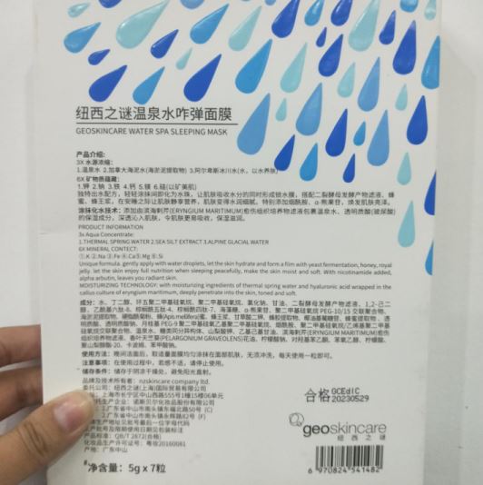 護膚水、乳液、面霜啥的,可以根據自己的膚質及喜好來選,不再多言。這里想說一下我用了一段時間,最近才注意到成分蠻6的一款補水面膜——紐西之謎溫泉水乍彈面膜。